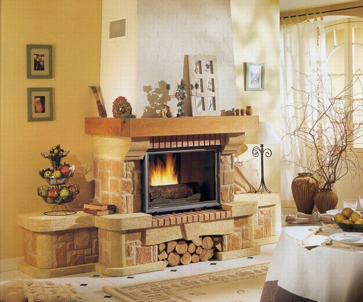 Можете да използвате специални конструкции за камина, които след това са облицовани с тухли. Обикновено те се затварят с излят портал, като по този начин се увеличава времето за горене на дърва за огрев, което означава, че повишават стойността на ефективността няколко пъти.