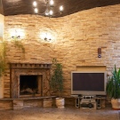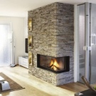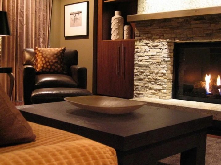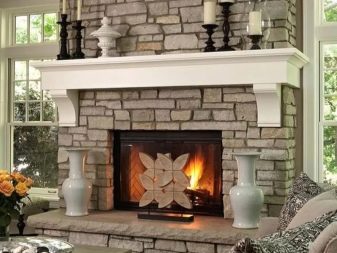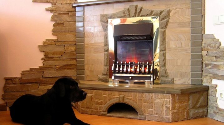 За да придаде на камината уважение и солиден вид, тя трябва да бъде облицована с декоративни плочки като „естествен камък“. Този тип облицовки са класифицирани като леки и сравнително евтини. Той не губи своята актуалност за дълго време и ви позволява да постигнете перфектния баланс между домашния комфорт и грандиозно дизайнерско решение. Камините в такава рамка имат страхотен външен вид..