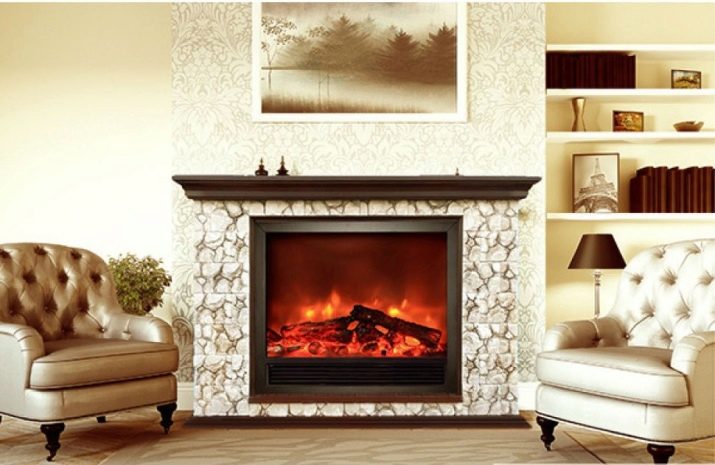 Електрическите продукти ви позволяват да създадете уютна атмосфера в стаята, с помощта на свирещи езици на пламъка. Ефектът от живия огън изглежда много реалистичен, изпълвайки душата с положителни емоции. Такива устройства са изключително удобни за използване, а специален режим на визуализация ви позволява да се наслаждавате на така наречения „студен“ огън дори през лятото. Имитацията под горящ пламък ще направи интериорния дизайн по -романтичен и благороден.