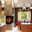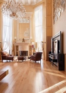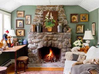Говорейки за голяма камина, те обикновено представляват класическа английска камина, изработена от тухли или камък.. По-добре е да проектирате инсталирането на такава камина заедно с къщата и да я издигнете в просторни, добре вентилирани помещения..