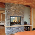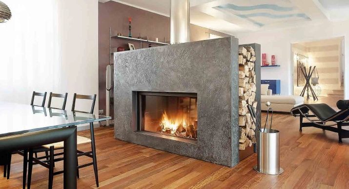 Двустранната камина е идеална за отопление на голяма стая или за две съседни стаи.. Това е проходна горивна камера със стъкло от двете страни. Най -често се инсталира в стена между две стаи или в декоративна преграда за зониране на стая, което ви позволява да се наслаждавате на една камина в две различни стаи..