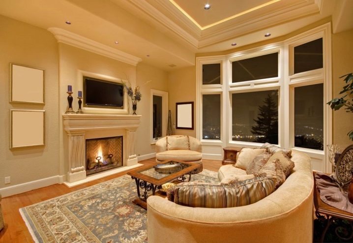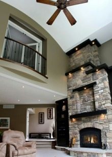 Също така, не забравяйте, че опънатите тавани не могат да се монтират директно над камината. Когато проектирате камина и избирате камина, трябва да запомните, че камината е не само камина, но и камина (обикновено за стандартен размер на трупа), място за лъжичка, рафт.