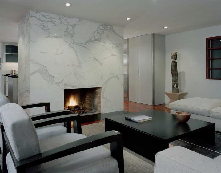 - наслагване с порцеланови каменни изделия или изкуствен камък, като преди това са били избрани проби с най -ниска топлопроводимост. Тази стъпка е от значение за камина, монтирана на стена..
