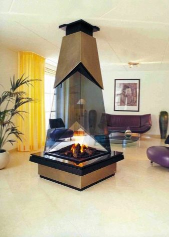 В допълнение, камините се различават помежду си и по дизайн. Например, в допълнение към стандартните квадратни, има трапецовидни камини. Ценителите на всичко необичайно са особено почитани от кръгла стъклена камина. Може да се инсталира навсякъде в стаята, дори в центъра. Тясна, широка, двустранна, четиристранна камина, кръгла-всичко това са разновидности на едно цяло.