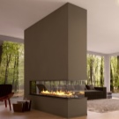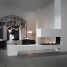 Такива камини от стъкло също са популярни, защото могат да се използват за условно разделяне на стаята на няколко зони, докато оригиналната преграда няма да изглежда твърде масивна и да „изпадне“ от интериорния стил. Тоест целостта на стаята ще остане същата..