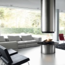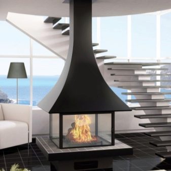 В допълнение, камините се различават помежду си и по дизайн. Например, в допълнение към стандартните квадратни, има трапецовидни камини. Ценителите на всичко необичайно са особено почитани от кръгла стъклена камина. Може да се инсталира навсякъде в стаята, дори в центъра. Тясна, широка, двустранна, четиристранна камина, кръгла-всичко това са разновидности на едно цяло.