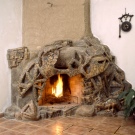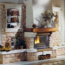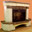 Камините от този модел се състоят от части с различни размери в комбинация от естествени, изкуствени камъни и шамотни тухли. Цветовата схема е предвидена за всеки вкус и включва кремави и пастелни цветове. Мраморът се обработва по метода на огледалното полиране, който подчертава красотата и характеристиките на камъка. Можете да закупите този модел на достъпна цена..