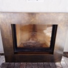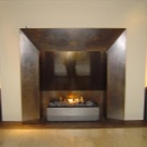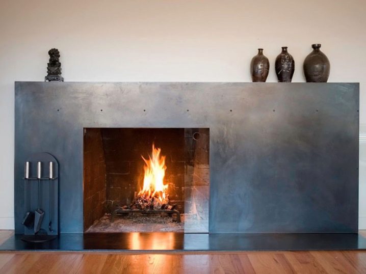 Необичайно дизайнерско решение ще бъде метална облицовка както на цялата камина, така и изключително на зоната на камината. Най -популярни са месинг и мед.