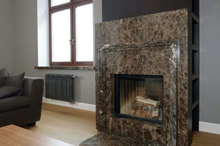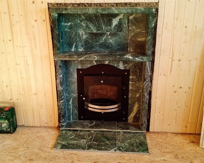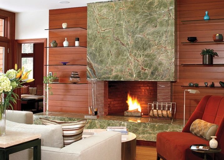 Материал, който винаги се търси. Това е наистина елитен довършителен материал и има почти прекомерна цена. Особено ако облицовката е направена от майстор по скица. Мраморът е с необичаен цвят, изглежда изящен и добре провежда топлината. По принцип облицовката на камината се сглобява от готови обработени части..