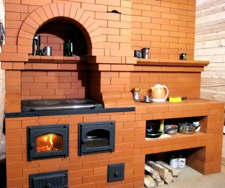 Има специална врата, която ви позволява да поставяте дърва за огрев в горивната камера. А самата камина е затворена от всички страни. Плочата е разположена точно над горивната камера. Той се нагрява с огън и позволява да се готви храна. Фурните с фурна също работят.