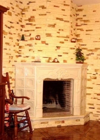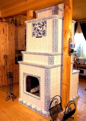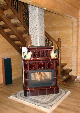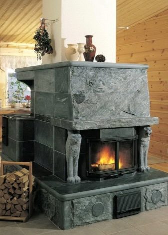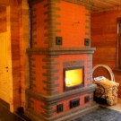 Това са камини в селски стил. Този дизайн ще изглежда добре в къща на дърво. Тавани от естествено дърво, хармонично съчетани облицовки на стени и тъмни подове. Освен това използването на тапети в този случай е напълно непрактично. Те бързо ще станат неизползваеми поради фурната. Руската печка ще работи добре. Издълбаните декоративни елементи добавят оригиналност и изключителност.