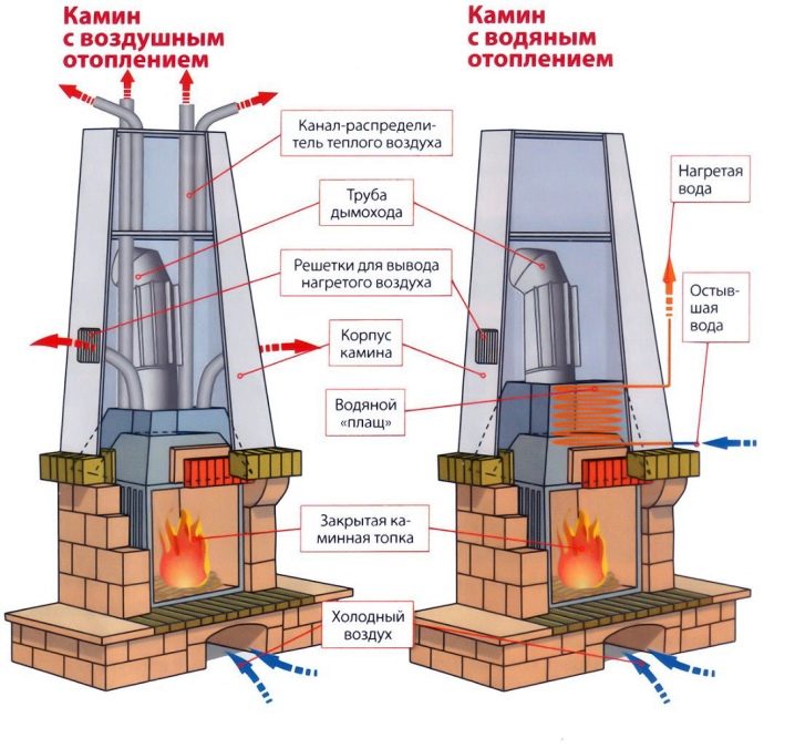 Въздушните камини се считат за най-добрите за отопление на къща. В такива дизайни се използва чугунена камина. Каналната система е разпределена в цялата къща и кожухът, в комбинация, дава желания резултат – пълно отопление. Системата работи по такъв начин, че студен въздух се насочва директно в горивната камера, загрява се и се издига нагоре през тръбите.