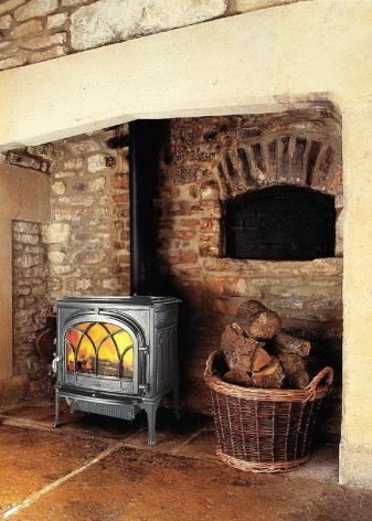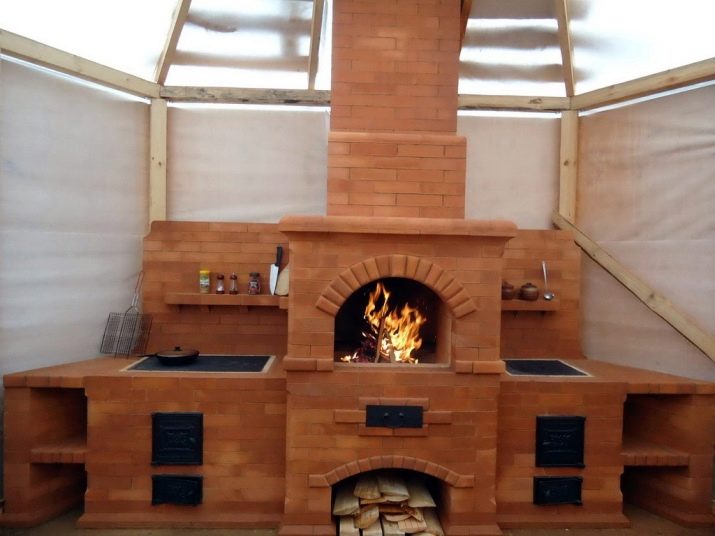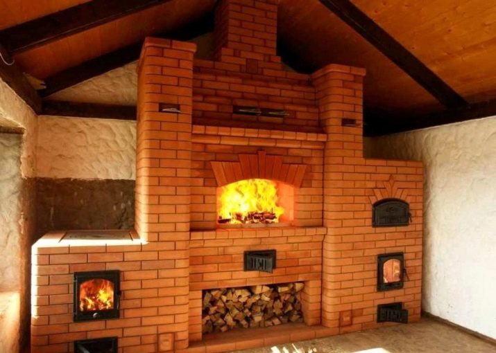 Има специална врата, която ви позволява да поставяте дърва за огрев в горивната камера. А самата камина е затворена от всички страни. Плочата е разположена точно над горивната камера. Той се нагрява с огън и позволява да се готви храна. Фурните с фурна също работят.