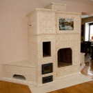 Друг вариант е интересна облицовка. По времето на Петър I беше модерно да се монтират печки с холандски плочки с пасторални рисунки с кобалтова боя в стаите. Такава печка ще украси интериора и ще ви накара да прекарате часове, разглеждайки рисунките на фона на малки плочки. В просторен апартамент такова решение е напълно подходящо..
