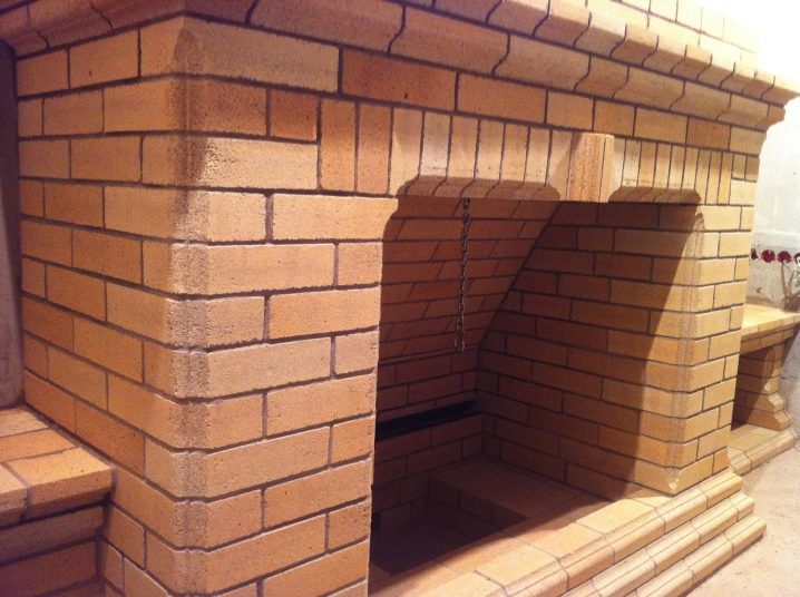 Цветовата схема на камината трябва да съответства на основния интериор. За стил „таванско помещение“ са подходящи ръчно формовани тухли с ефект на стареене. За класически интериор в бежови тонове – светложълта тухла.