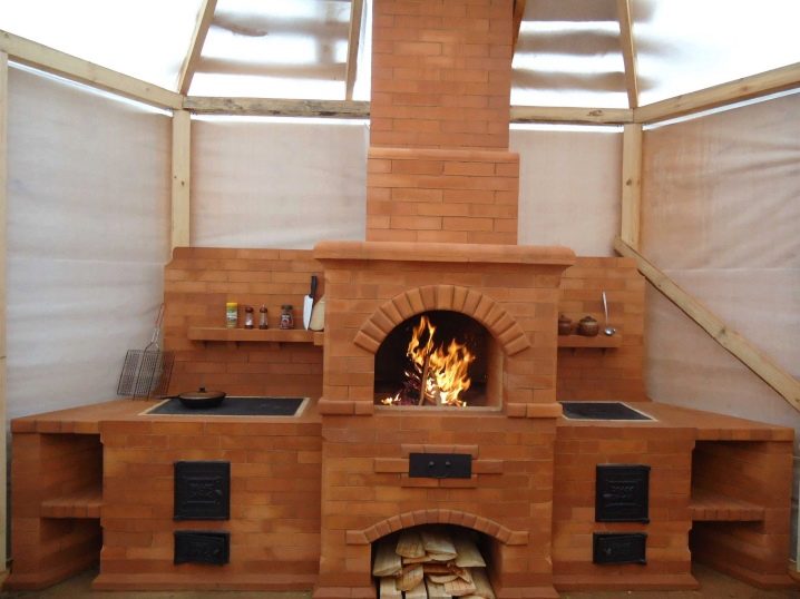 Печката ще позволи на топлината да остане в стаята по -дълго, а ако оборудвате специален самолет с котлон, можете да готвите, без да използвате газова печка. Огънят във фурната може да осигури достатъчна температура за загряване и готвене на храна. Този модел се нарича “швед” и е подходящ за готвене, отопление, съхранение на дрехи. Плотът е изработен от чугун и може да има няколко горелки.