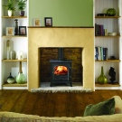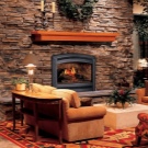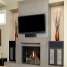 - Вариант Б – камина до стената. Може да се направи в съществуваща сграда, неговите предимства са достатъчно голяма площ от повърхността, която излъчва топлина, което ви позволява не само да се насладите на красотата на изгарянето на дърва за огрев, но и да получите практически ползи от комфортната температура в стая..