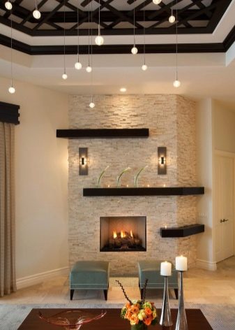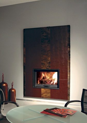 Предната облицовка на камината или цялата стена може да бъде украсена с красив камък или със специален метален дизайн. Можете да използвате различни цветови схеми и да комбинирате покритието, което ще ви позволи да създадете свой собствен уникален дизайн..