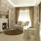 Камината също трябва да съответства на декларирания стил. Неговите светли цветове, комбинирани с довършителни материали като тухла или естествен камък, ще създадат деликатно рамкиране на залата. Повърхността на камината трябва да бъде матова. Така че можете да използвате специално състарени керамични тухли..