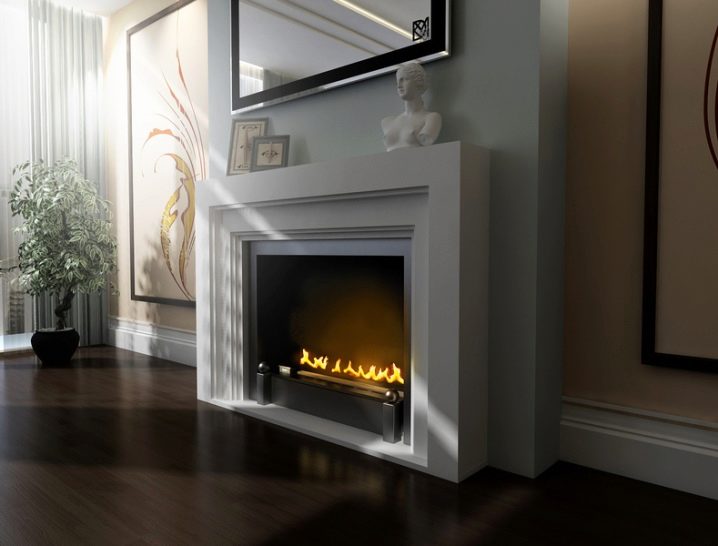 Камина, която е кръстоска между истинска и изкуствена, се нарича биокамина. Неговата особеност е, че може да се инсталира дори в средата на стаята или на рафт близо до дивана. Този оригинален модел се задвижва от горива от тръстика, царевично нишесте и захарно цвекло. В същото време пламъкът, покрит с топлоустойчиво стъкло, изглежда абсолютно реален. Включва се с помощта на пиезо запалка или дистанционно управление.