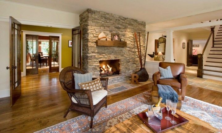 Как да обзаведем мебели в хол с камина, като същевременно поддържаме стил? За да направите това, достатъчно е да подредите плетени мини-дивани и фотьойли, като ги насочите към камината. Мебелите не трябва да стоят близо до стените.