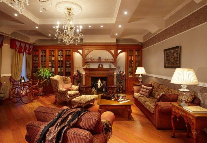 Английският стил е създаден за уважавани ценители на благородството и лукса. В такава всекидневна е приятно да прекарвате време в четене на книга или разговор с близки. Всичко тук говори за спокойствие и редовност на живота..