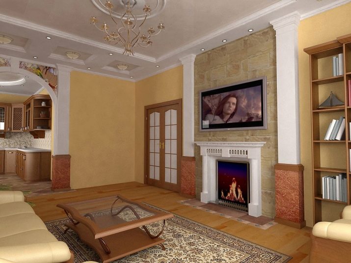 Както виждаме, дори в хола на апартамент можете лесно да инсталирате камина, но много от тях са спрени от цената на повечето модели. Въпреки това, дори при инсталиране на камина, можете значително да спестите бюджета си, като сами поставите фалшива камина. Този сорт няма горивна камера и може да бъде направен от голямо разнообразие от материали, например гипсокартон или пяна. Мястото на горивната камера е украсено с високи свещи, сладки сувенири, а през Нова година подреждат в нея магазин за подаръци.