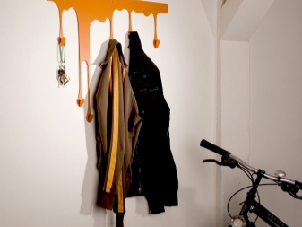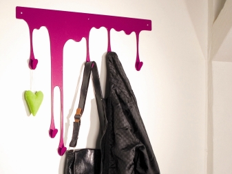 Това е много модерен и модерен тип дизайн на закачалка за коридор. Прилича на разлята боя, върху капещите капки от които са разположени куки. Дизайнът има рамка от една част, която може да бъде фиксирана с лепило или самонарезни винтове. Такъв продукт ще добави жар към вашия интериор. Винаги ще се усмихвате, когато се приберете и закачите палтото си на такива оригинални куки..