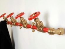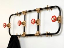 Такова оригинално решение ще бъде чудесна идея за допълване на коридор в стил таванско помещение. Рамката на конструкцията е изработена от истинска руда, а клапаните на пожарния кран действат като куки. Това е много издръжлив продукт, който може да издържи голямо тегло, а също и оригинален подарък, ако член на семейството работи в областта на противопожарната защита..