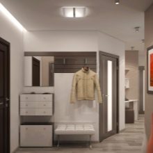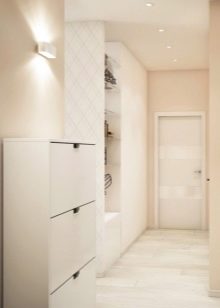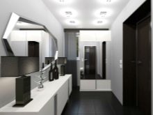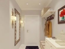 Основната характеристика на подреждането на такъв коридор е принцип на максимално освобождаване на пространство. При подреждането обикновено използват малки шкафове като мебели за съхранение на вещи, в които дори връхните дрехи дори не се вписват..