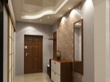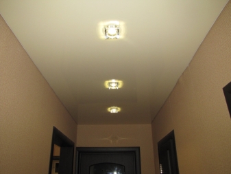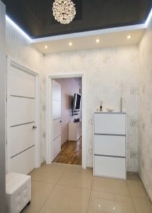 Гланцовите тавани също ще направят стаята по -висока и по -просторна. Такъв таван е в състояние да подравнява стените и да придаде на тази малка стая по -правилен външен вид. В допълнение, такова покритие е подходящо за коридора, тъй като е лесно за поддръжка. Окаченият таван също ще ви позволи да създадете индивидуална система за осветление, да поставите светли акценти в коридора и да го изпълните със светлина и лекота..