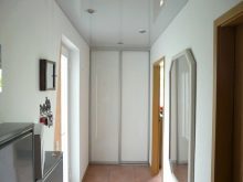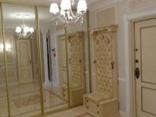 - В апартамента можете да измислите стилни и интересни опции за подреждане на уютен коридор. Така че, в тесен коридор можете поставете всички мебели по една стена, и срещу него, поставете широки огледала по цялата стена или я покрийте с един цвят. По -добре е, ако такива мебели имат лъскава повърхност и светло покритие. Такова решение в къщата може да направи всеки коридор по -просторен. По този начин можете да създадете красив светъл коридор..