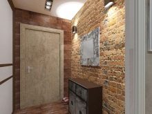 - При декориране на стая лофт стил най -добре е да използвате покритие от лек метал. Такъв коридор може да има леко груби интериорни елементи, например шкафове за обувки със сурови фасади. Като материал за декорация на стени, тухлите или декоративният камък за тухла са идеални, както и визуализация на немазани покрития.