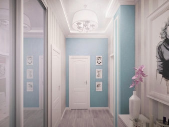 По -добре е коридорът и самият коридор да са едноцветни и направени в студени цветове. Можете да дадете предпочитание на сини и зелени тонове.