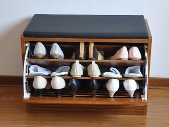 Функционалните мебели могат да имат не само кутия за обувки, но и колела, както и сгъваема седалка. Можете да изберете най -необичайните цветови комбинации, които да впишат органично моделите в интериора. Ярките цветове, необичайните текстури ще ви помогнат да направите дома си по -оригинален.