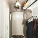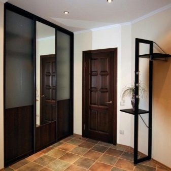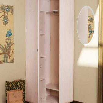 Ако обаче няма място за изграждане на шкафа, тогава се използва свободното пространство на ъгъла, Можете също поставете тесни мебели по стената (молив, гардероб; дълбочината на предметите не трябва да надвишава 40 см). В случаите, когато инсталирането на дори тесен шкаф не е възможно, се използва отворена закачалка (ред куки на стената), пълна с рафт за шапки и евентуално малка поставка за обувки, която допълнително се използва като място за сядане и смяна на обувки.