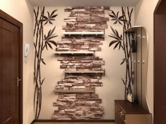 Използването на стенописи върху така наречената стена с акцент може визуално да разшири пространството. Фреската може да бъде заменена с голяма оригинална картина или фототапет. Освен това можете да поставите декоративна каменна рамка около арката или частично по стената. Той имитира добре естествен материал и може перфектно да се впише в концепцията за коридор..