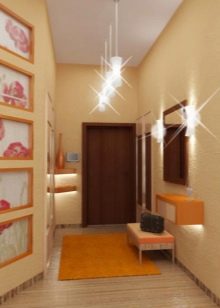 Последните щрихи в дизайна на стаята могат да помогнат за изравняване на несъвършенствата в интериора. Използването на добре обмислено осветление може да създаде онзи уют, който липсваше. В коридора трябва да има много осветление. Възможните опции за поставяне на осветителни тела са дадени по -долу: