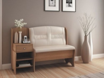 - В момента дизайнерите предлагат да не стоите на крака, докато завързвате ботушите си, а да седнете удобно, например, на диван. Изглежда много впечатляващо и хармонично ще се впише в коридора малко по -голям от стандартния размер. Можете да изберете всеки цвят и тапицерия, препоръчително е да не избирате твърде лесно замърсени, светъл цвят и деликатна тъкан, тъй като петна и ожулвания могат да се появят от честа употреба.