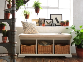 - Любителите на умишлената древност и стила на изтъркан шик в дизайна на стаята, но които искат да имат мебели с места за сядане, в коридора ще ви бъдат полезни с такъв елемент като ракла. Вътре има много място за съхранение, а функционалността е същата като тази на дивана.