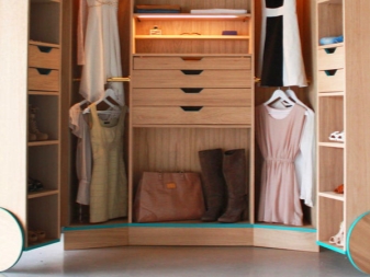 - По -компактна алтернатива е гардеробът. Той е просторен, надежден и изглежда добре. Шкафът по поръчка ще отговаря на всички изисквания на собственика. Броят и размерът на рафтовете, дължината на шината, ширината на крилото на вратата, наличието на затворени чекмеджета или кошници за аксесоари и малки аксесоари могат да бъдат обсъдени с производителя. Можете да изберете абсолютно всеки дизайн, което опростява процеса на подбор.