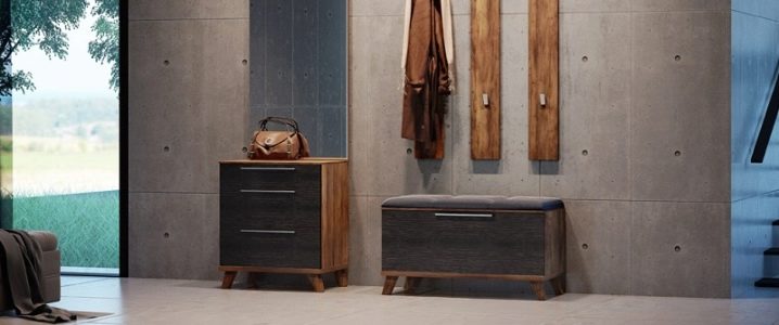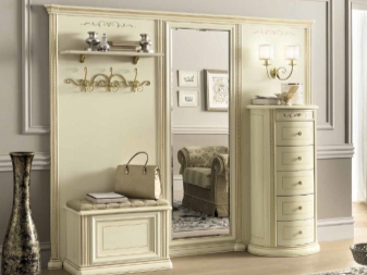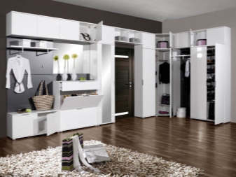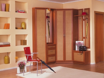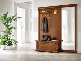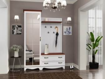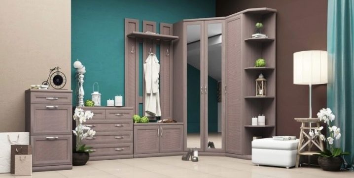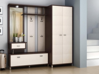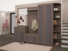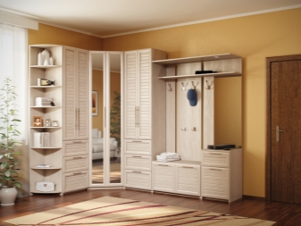 Различните конфигурации ви позволяват да направите дизайна уникален и да отговаря на всички изисквания на собственика. В наши дни корпусните мебели са много разпространени. Разполага със стандартен комплект: отворена закачалка за ежедневна употреба, гардероб, обикновено с люлеещи се врати, поставка за обувки, рафт за шапки и шалове. Може да има малък скрин или няколко отворени рафта за съхранение на ключове, огледало. Тази слушалка отговаря на всички изисквания, изглежда като единичен комплекс и не изисква много въображение за проектиране..