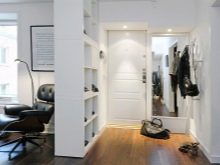 Но много се заблуждават, че такива пространства трябва непременно да бъдат изпълнени с интериорни елементи. Любителите на минимализма като цяло могат да изоставят големи гардероби и многобройни фотьойли в полза на обикновена закачалка и да оставят обувки на пода. Този много смел, но в същото време модерен вариант подхожда на млади и енергични хора..