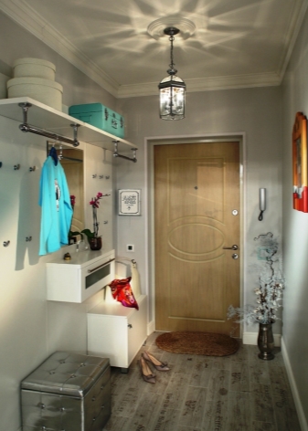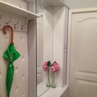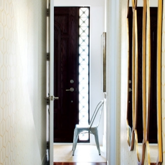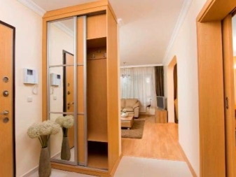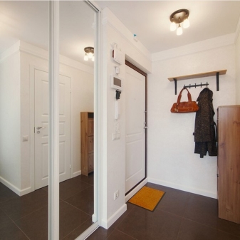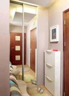 Много хора смятат, че създаването на оригинално оформление в малък коридор от 3 квадратни метра едностаен апартамент е доста трудно. Но това не е вярно, тъй като в този случай можете да използвате различни интериорни предмети, включително мебели, но те трябва да са малко по -малки. Можете красиво да оборудвате стая, използвайки тесен огледален гардероб. Освен това обикновено има гладки линии и в него няма остри ъгли. Такъв гардероб няма да има дръжки и ненужни елементи от декора, така че ще изглежда много сдържан..