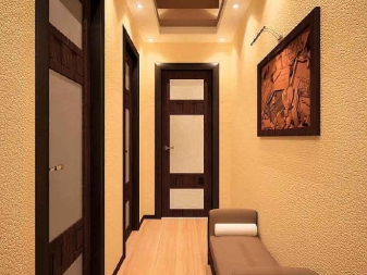 Всеки малък коридор е декориран в светли цветове. Често е изпълнен с огледала и стъклени елементи. Тесният коридор в Хрушчов се регулира с помощта на мебели. Така че по най -тясната стена обикновено се монтира шкаф. В такива коридори, като правило, са инсталирани много различни източници на светлина..