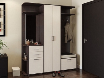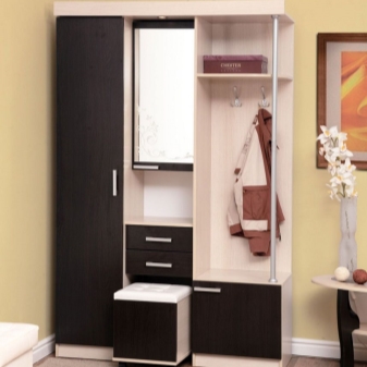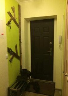 Не всички гардероби са подходящи за много малки коридори. Ето защо те се заменят със закачалки за стена или стойки за щанги. Те обикновено се намират близо до входа. Също в Хрушчов ъглови мебели често се използват за подреждане. Това ви позволява функционално да запълните свободните ъгли и да спестите място..