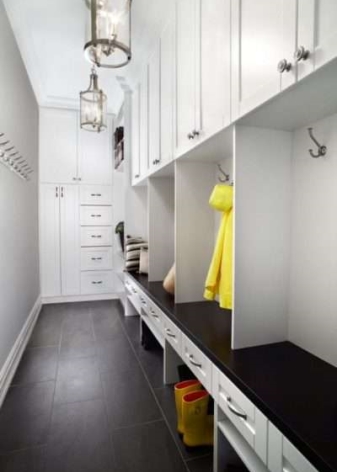 При обзавеждането на това пространство е важно да се има предвид това тя трябва да има няколко функционални области: място за събличане, смяна на обувки и съхранение на обувки, както и система за съхранение на дрехи. Зоната за обличане трябва да бъде възможно най-просторна и да заема площ приблизително 80×80 см. В останалата зона е необходимо да се постави тесен килер за съхранение на дрехи и мини рафт за съхранение на обувки.