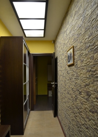 Опитайте се също да избягвате пластмасови панели и камък. Допустим е само светъл цвят изкуствен камък. Такъв декоративен елемент може да направи интериора на коридора по -лек и изящен. Избягвайте пластмасовите панели при обзавеждането, тъй като те също така ограничават пространството. Довършването може да се извърши чрез покриване на стените с боя.