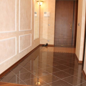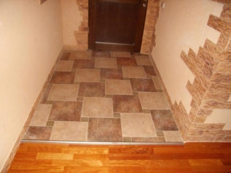 Що се отнася до ламината и паркета, те изглеждат много елегантни и в допълнение към функционалното си предназначение играят ролята на декор в интериора. С тяхна помощ можете красиво да украсите дори най -малкия коридор в класически стил, използвайки естествени дървесни нюанси. Комбинираните опции често се използват като подови настилки. Така че, на входа поставят керамични плочки, които не се замърсяват или деформират от влага, за разлика от дървото, а централната зона към стаята е положена с ламинат.