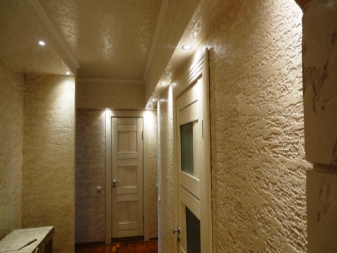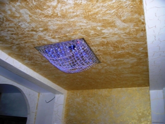 За довършване на таваните на Хрушчов можете да използвате декоративна мазилка. Само в този случай трябва да използвате това покритие за декорация на стени. По този начин можете да създадете един уникален ансамбъл, който ще разшири границите на стаята както нагоре, така и навън. Мазилката изглежда много елегантна и оригинална.